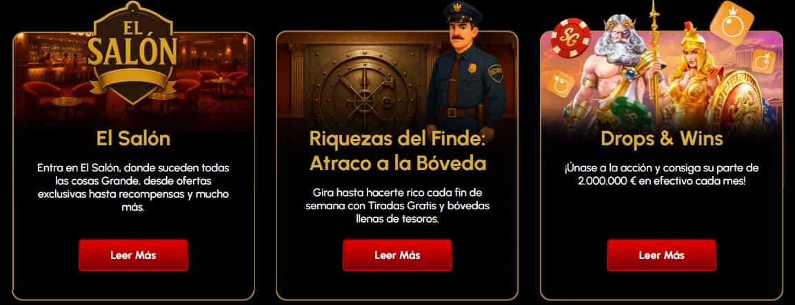 Las promociones regulares mantienen la emoción en SpinGrande España. Además del bono de bienvenida, podrás disfrutar de cashback semanal, bonos de recarga y torneos con grandes premios. Los jugadores VIP obtienen ofertas exclusivas, retiradas más rápidas y gestores personales de cuenta.